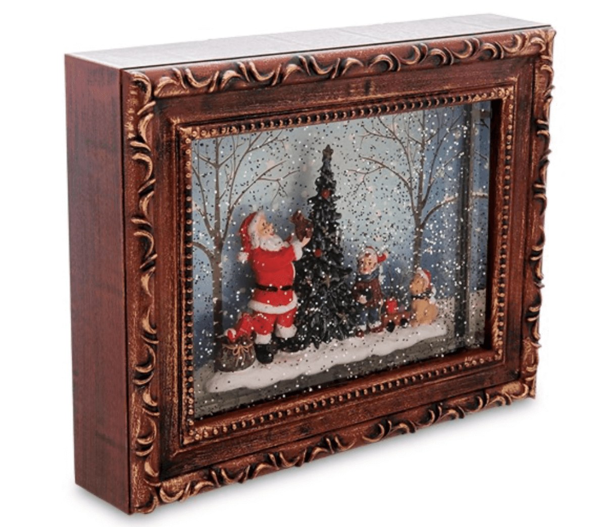 Новогодняя миниатюра с подсветкой выглядит словно окошко в мир зимней сказки. Подарите эту красивую композицию тем, кто вам близок и пусть она станет для них олицетворением новогоднего волшебства.