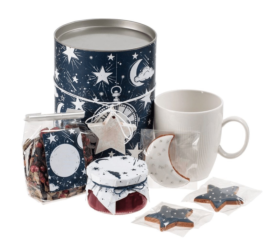 Новогодний набор для праздничного чаепития — подарок, которому точно найдётся применение в течение зимних праздников. Он пригодится в как дни приема гостей, так и во время душевных посиделок вечерами в кругу семьи.