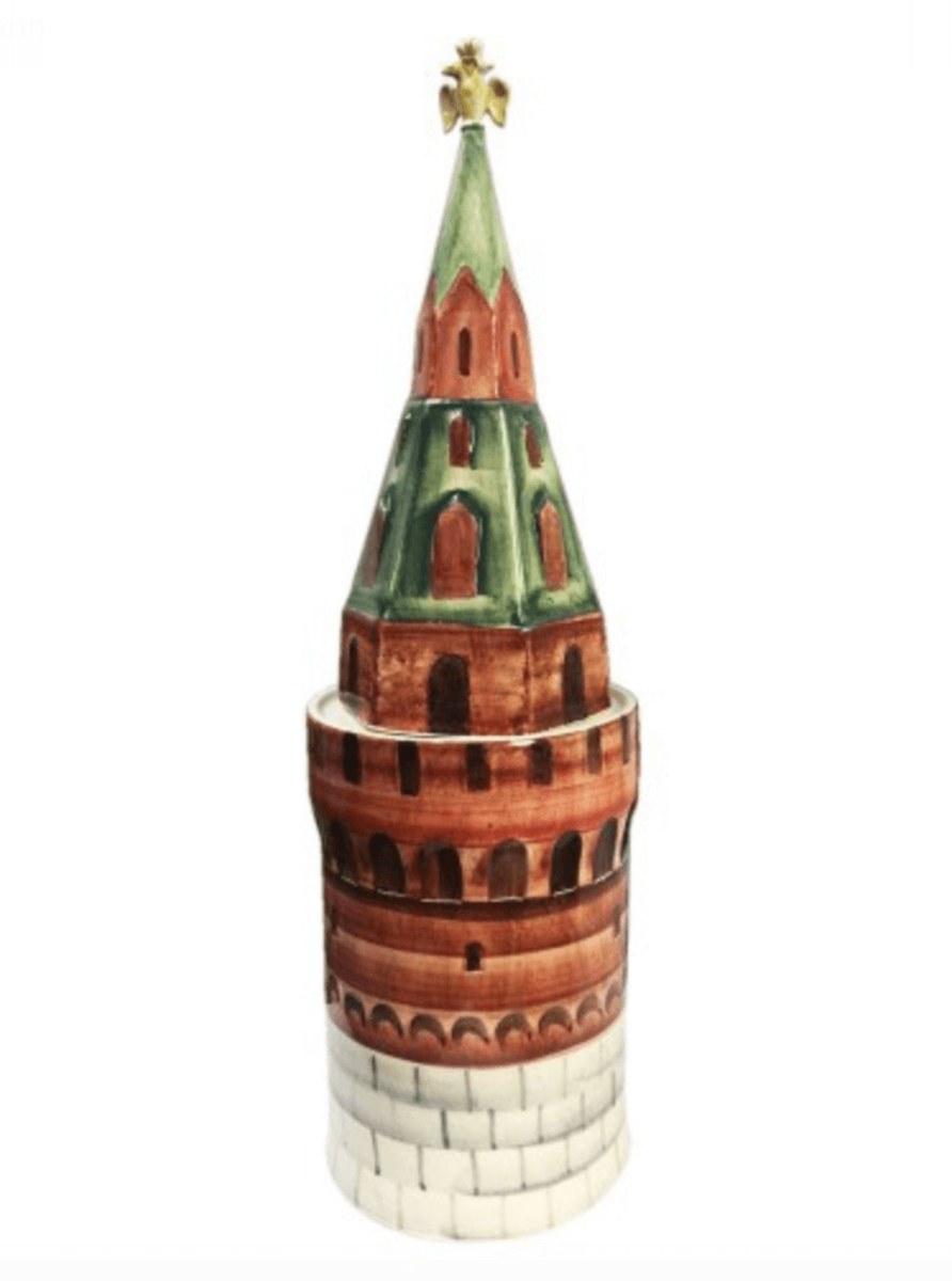 Керамический подарочный штоф в виде кремлёвской башни займет почётное место на новогоднем столе.