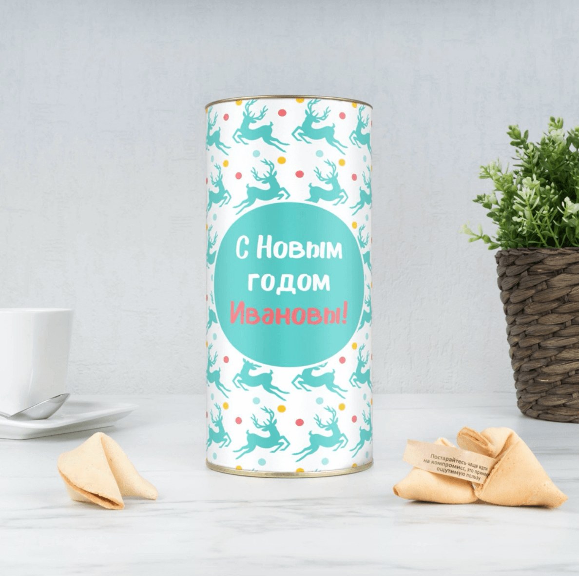 Это хрустящее печенье в новогодней упаковке с именной этикеткой не только вкусное, но и чуточку волшебное — ведь оно предсказывает будущее! Внутри каждого печенья — маленькая записка с добрыми, веселыми и побуждающими действовать предсказаниями. Остается только поверить в то, что все исполнится и стремиться к достижению желаемого!
