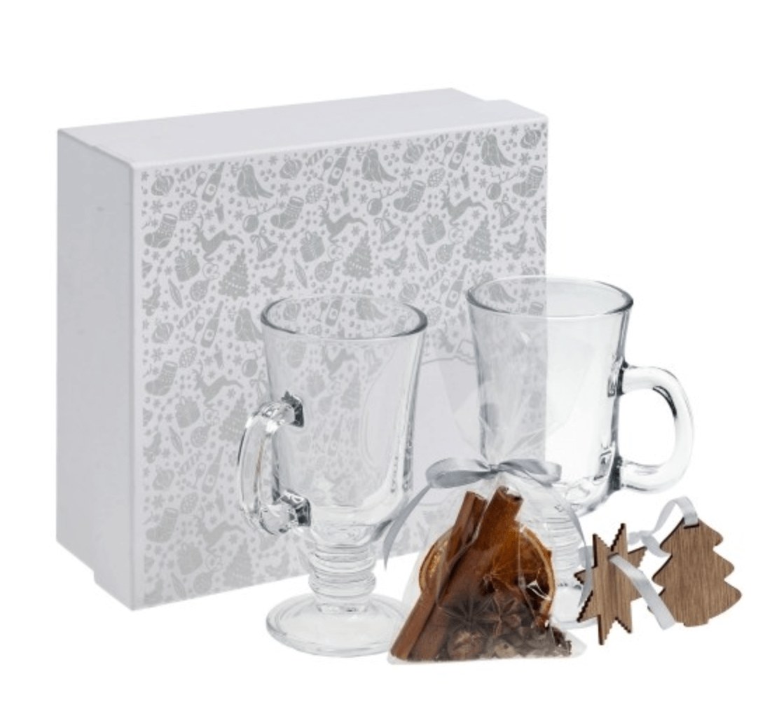 Универсальный подарок на Новый год, который можно преподнести знакомой семейной паре, друзьям или родителям. В набор входят два бокала для глинтвейна, пара деревянных ёлочных игрушек и ароматные специи.