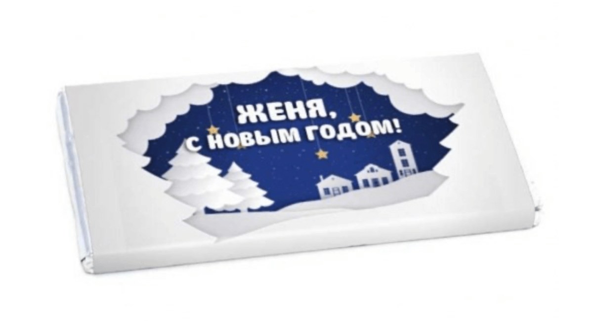 Сладкий новогодний сувенир и знак внимания — именная шоколадная открытка «С Новым годом!». Укажите, чье имя написать на обертке и порадуйте знакомых вкусным подарком.