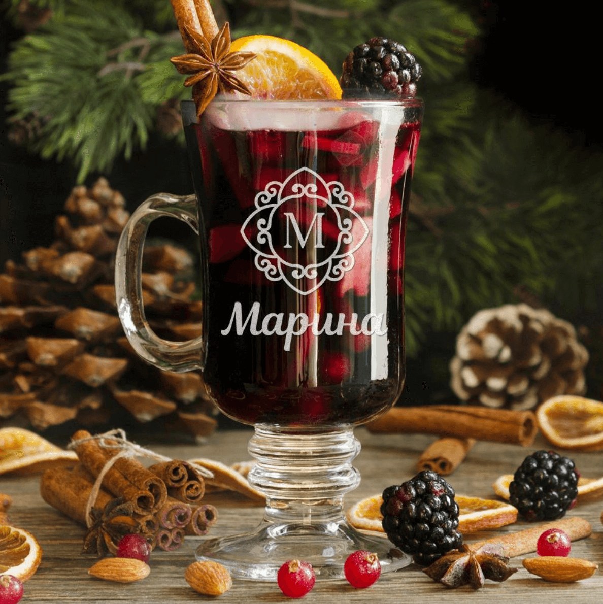 Зимние праздники — время теплых напитков. Подарите друзьям или знакомым на Новый год именные бокалы для глинтвейна! Этот напиток нужно подавать в специальных бокалах, имеющих толстые стенки, чтобы глинтвейн дольше оставался горячим.