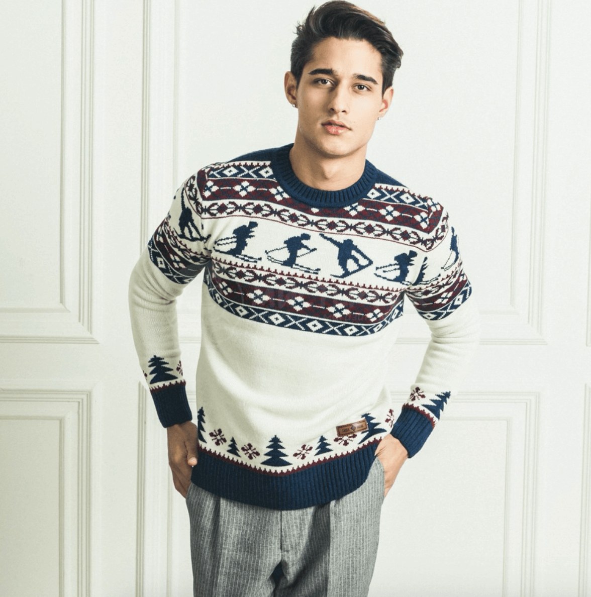 Интересная вариация на тему уже ставших классическими свитеров с оленями. Такому подарку точно будет рад мужчина или парень, увлеченный зимними видами спорта.
