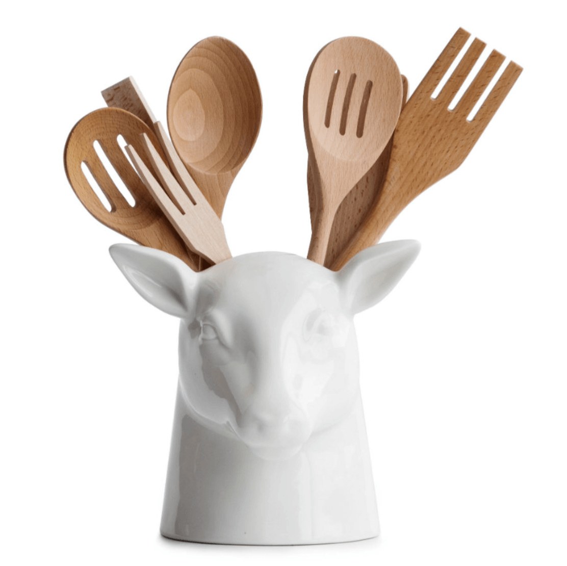 Керамический органайзер в виде головы оленя поможет держать под рукой необходимые кухонные принадлежности. Оригинальное исполнение позволит ему стать не только полезным предметом для кухни, но и стильным элементом рождественского декора.