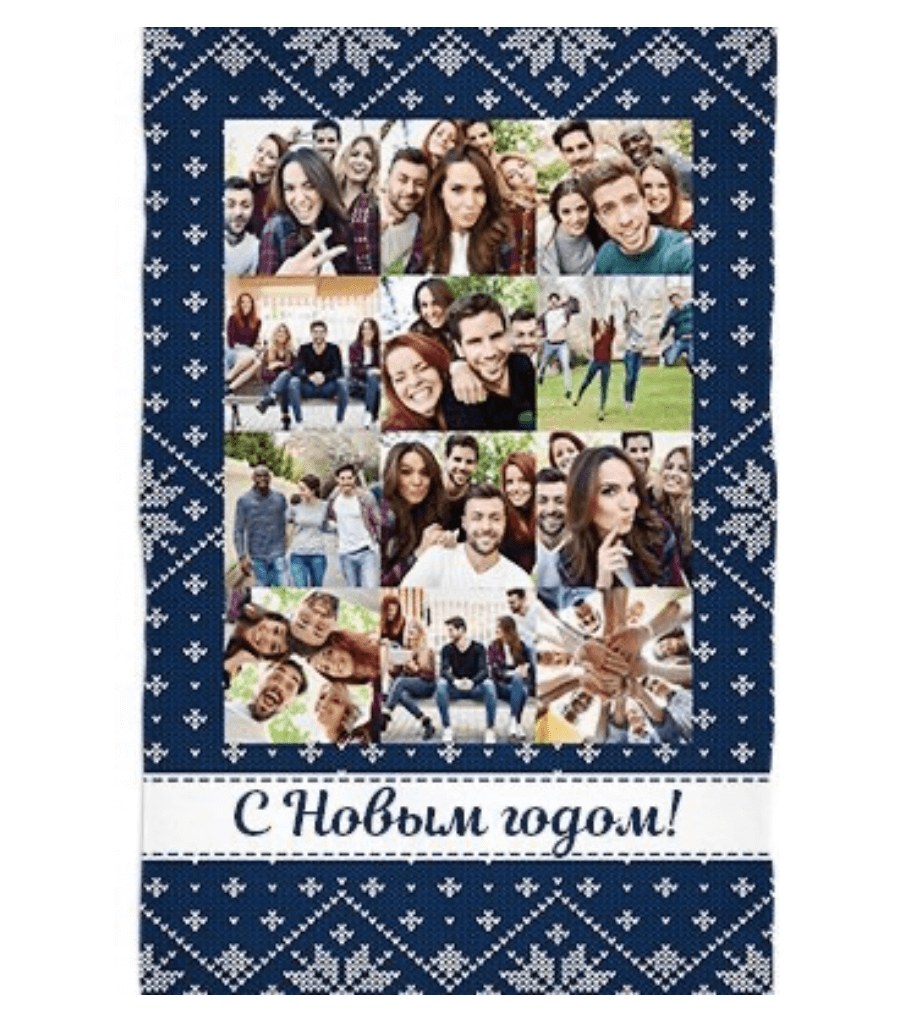 Ещё одна интересная идея — выбрать плед с новогодним дизайном и добавить свои фото. Персональный подарок получать приятнее!