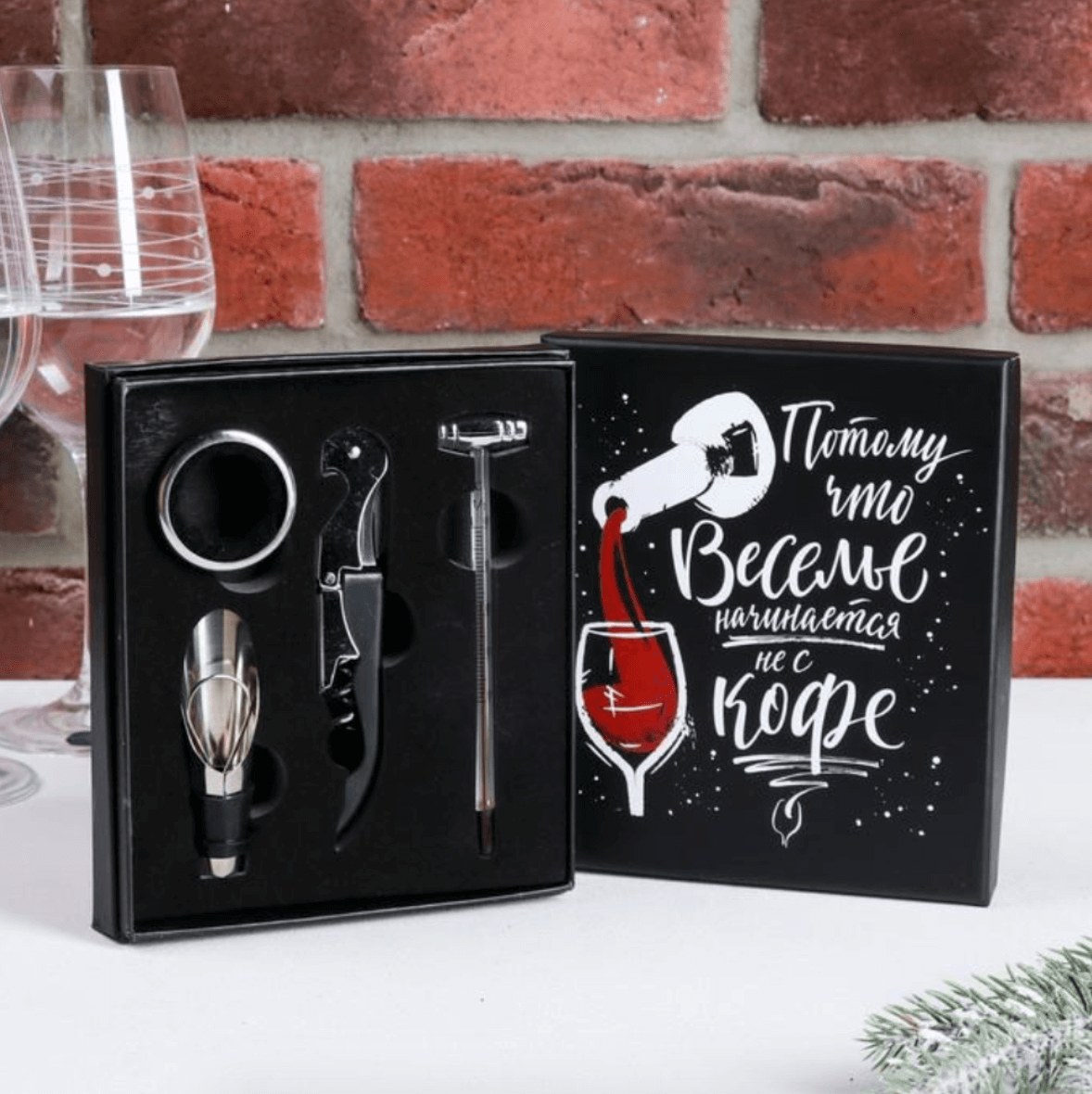 Аксессуары для вина могут неоднократно пригодиться на протяжении новогодних праздников. Набор сомелье — классический подарок мужчине, ценящему изысканные напитки.