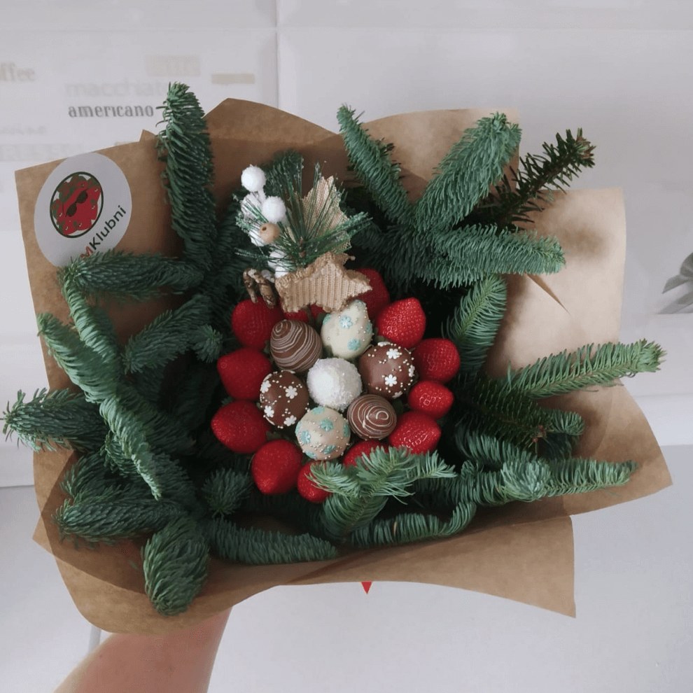 17. Клубничный букет «Новогодний»