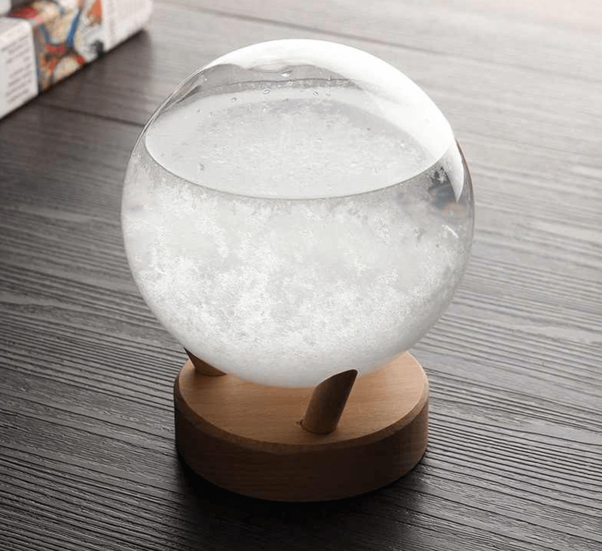 Штормгласс — не просто декоративный предмет интерьера, это интересный химический метеорологический прибор, с помощью которого можно попробовать предсказать погоду. Наличие и внешний вид осадка, который появляется в жидкости, находящейся в колбе, меняется в зависимости от погодных условий, что позволяет делать прогноз.