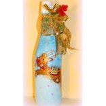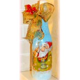 По желанию оформите горлышко бутылки любым новогодним декором: это может быть мишура или даже связанный маленький шарфик. Бутылка готова. Можно дарить!
