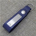 Кожаный синий браслет с глянцевой пластиной для гравировки