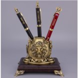 Подарочный набор "Царский" (держатель "Лев на щите" с фигурками Сова и Орел, ручки Лев, Сова, Символы власти)