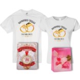 Подарок на годовщину «Золотая свадьба»: футболки и медаль